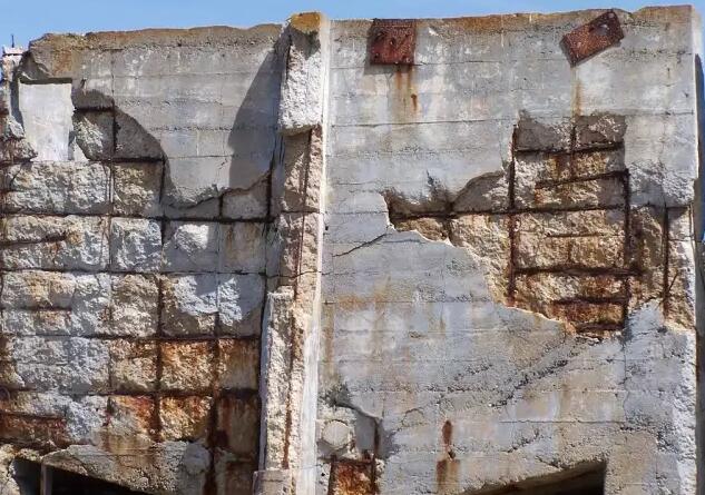 鋼筋銹蝕生成腐蝕產(chǎn)物,其體積是基體體積的2~4倍,腐蝕產(chǎn)物在混凝土和鋼筋之間積聚,對混凝土的擠壓力逐漸增大,混凝土保護層在這種擠壓力的作用下拉應(yīng)力逐漸加大,直到開裂、起鼓、剝落;炷帘Wo層破壞后,使鋼筋與混凝土界面結(jié)合強度迅速下降,甚至完全喪失,不但影響結(jié)構(gòu)物的正常使用,甚至使建筑物遭到完全破壞,給國家經(jīng)濟造成重大損失。