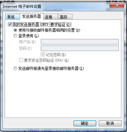 在彈框中,點(diǎn)擊“發(fā)送服務(wù)器”,并按照頁面所示,勾選相關(guān)選項。點(diǎn)擊“確定”回到“添加新賬戶”窗口。